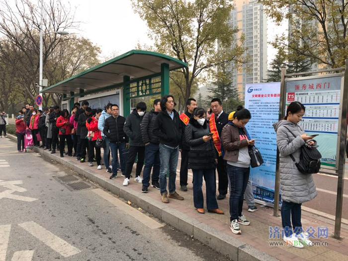济南领秀城社区公交站台排队乘车彰显城市文明