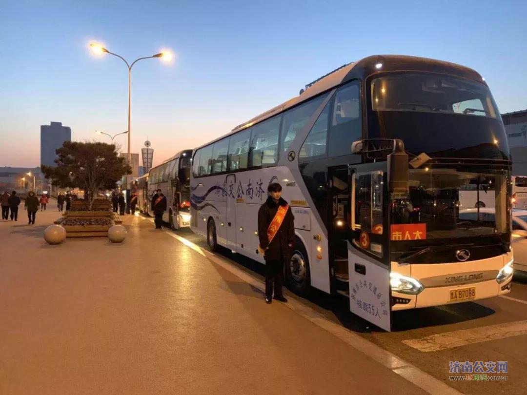 21日一早,首批35部通勤车辆及人员整装待发,总公司党委成员在石总的带领下亲临现场指挥调度、慰问职工。到达站点送行的张宏伟书记看到后,与石总和班子成员逐一亲切握手表示慰问,并称赞道:“(济南公交对济莱通勤班车)指挥有序,保障有力。济南公交非常重视,整个班子都来了,非常辛苦。”