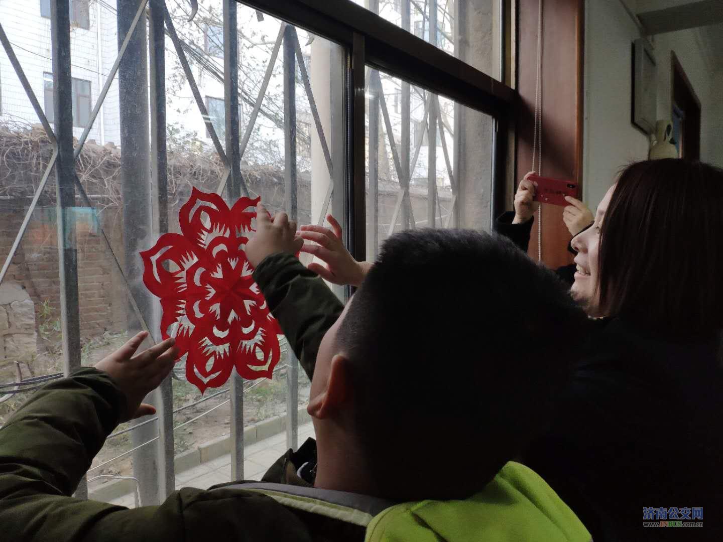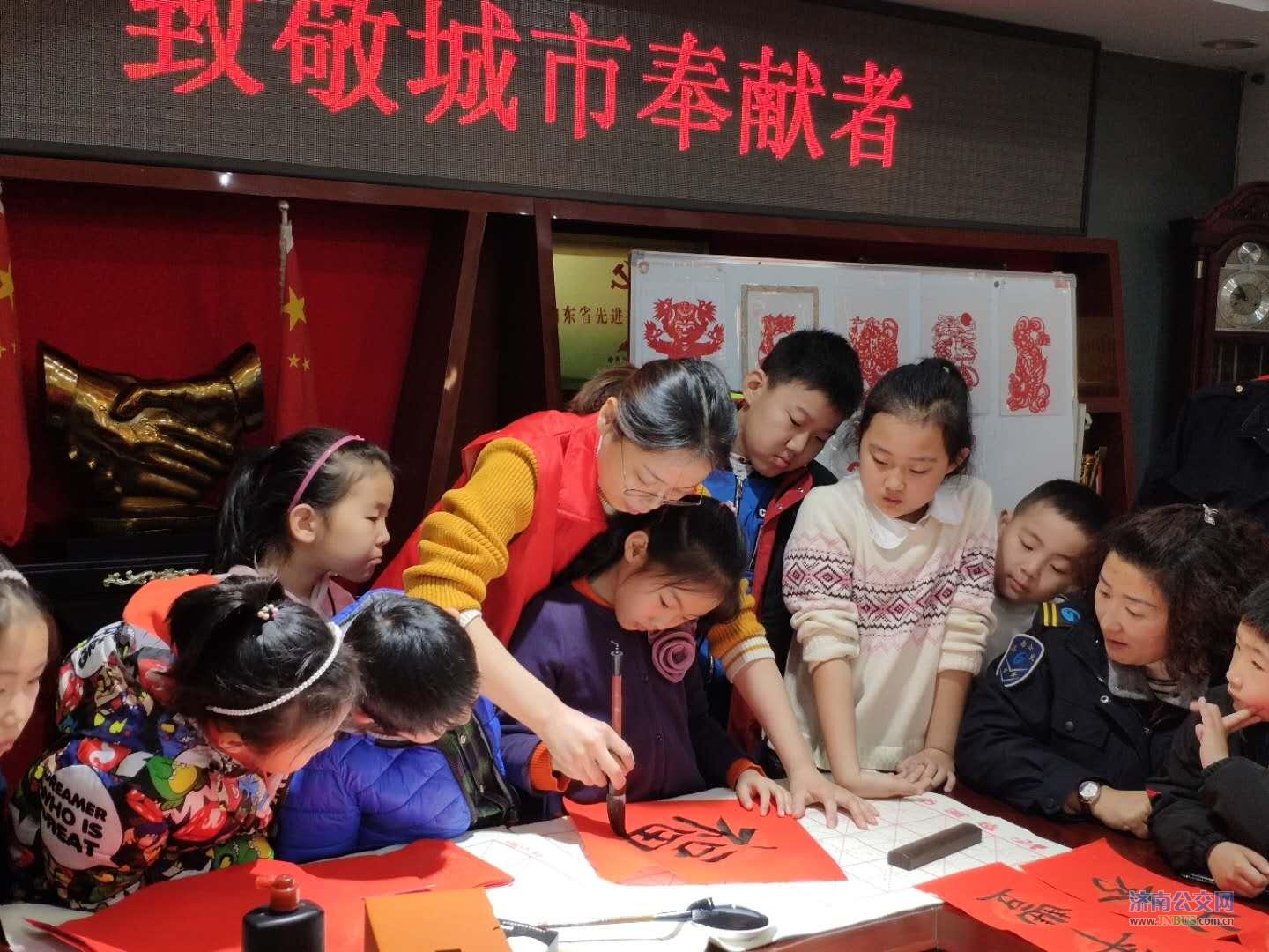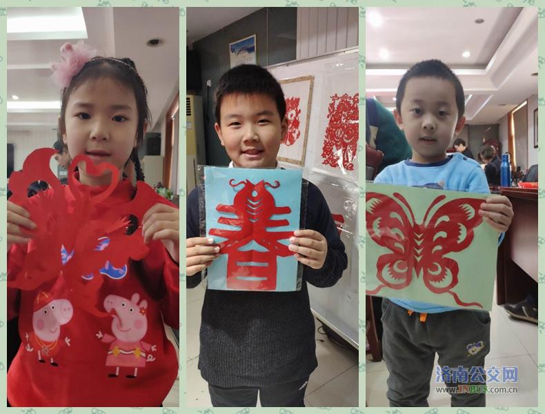 接下来,在团市委的安排下,济南市青少年宫书法老师毕萱林、济南市青少年宫剪纸老师罗亚杰为孩子们带来了生动有趣的书法课程及剪纸课程。老师们说道:“我对孩子们说,大家的窗花和春联将会装饰爸爸妈妈的工作休息室,当听到自己的作品要送给爸爸妈妈和爸爸妈妈的同事们时,孩子们学得很用心,都想把自己对父母的浓浓亲情寄托在小小窗花和春联上。”