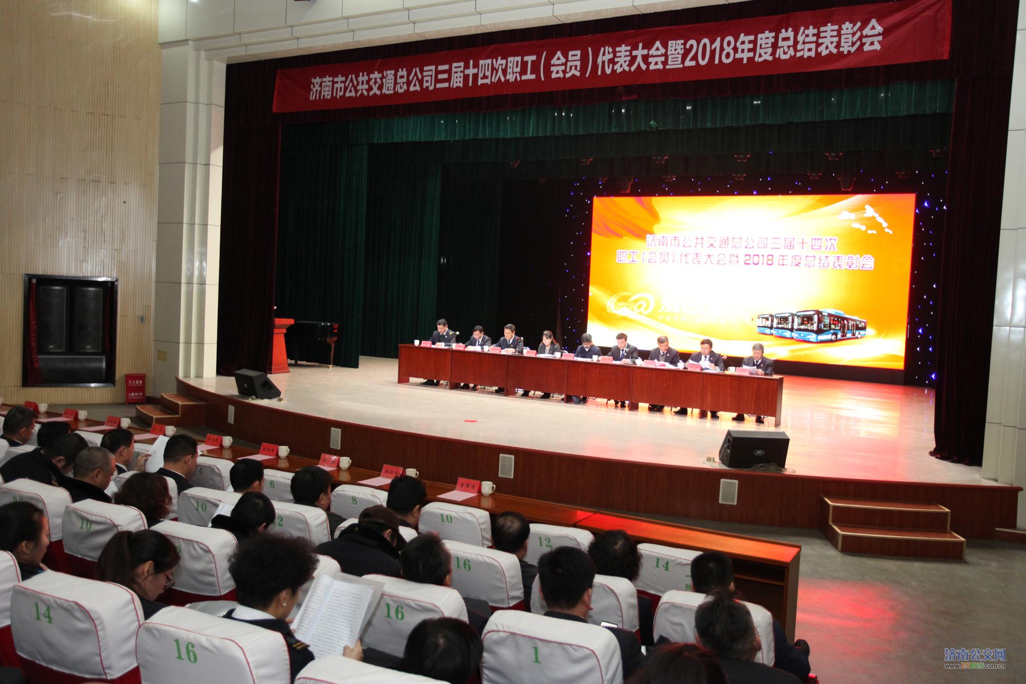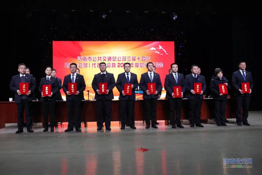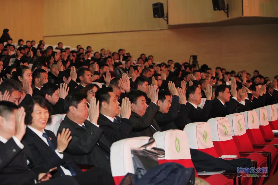 济南公交官网讯 2019年1月24日,济南市公共交通总公司召开三届十四次职工(会员)代表大会暨2018年度总结表彰会。市城乡交通运输委员会党委委员、副主任罗卫东,市国资委派驻济南公交监事会主席赵鸿雁、监事吴敏,总公司经理、党委副书记石军及班子成员出席会议。总公司职工(会员)代表、受表彰人员、一线职工代表等近500人参加了大会。