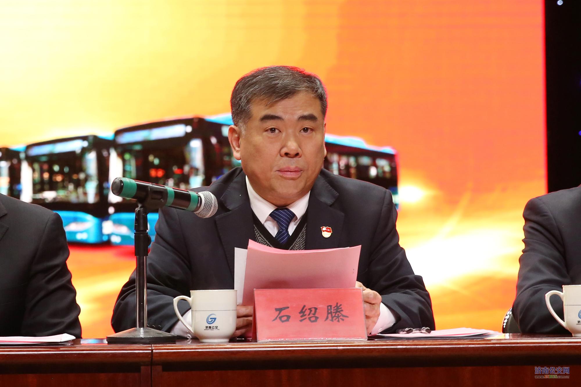 石军同志作题为《夯实基础,提升品质,开创公交事业发展新辉煌》的行政工作报告。