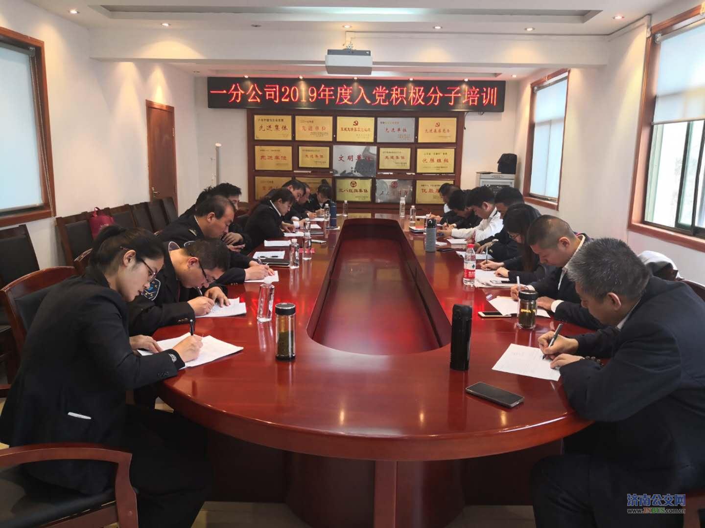 济南公交官网讯 为做好组织发展工作,进一步强化对新党员和入党积极分子的党性锤炼与培养教育,根据党建工作安排,3月20日至22日,一分公司党委在石门会议室举办了2019年度入党积极分子培训班。来自车队和机关部室的8名预备党员和9名入党积极分子参加了培训。