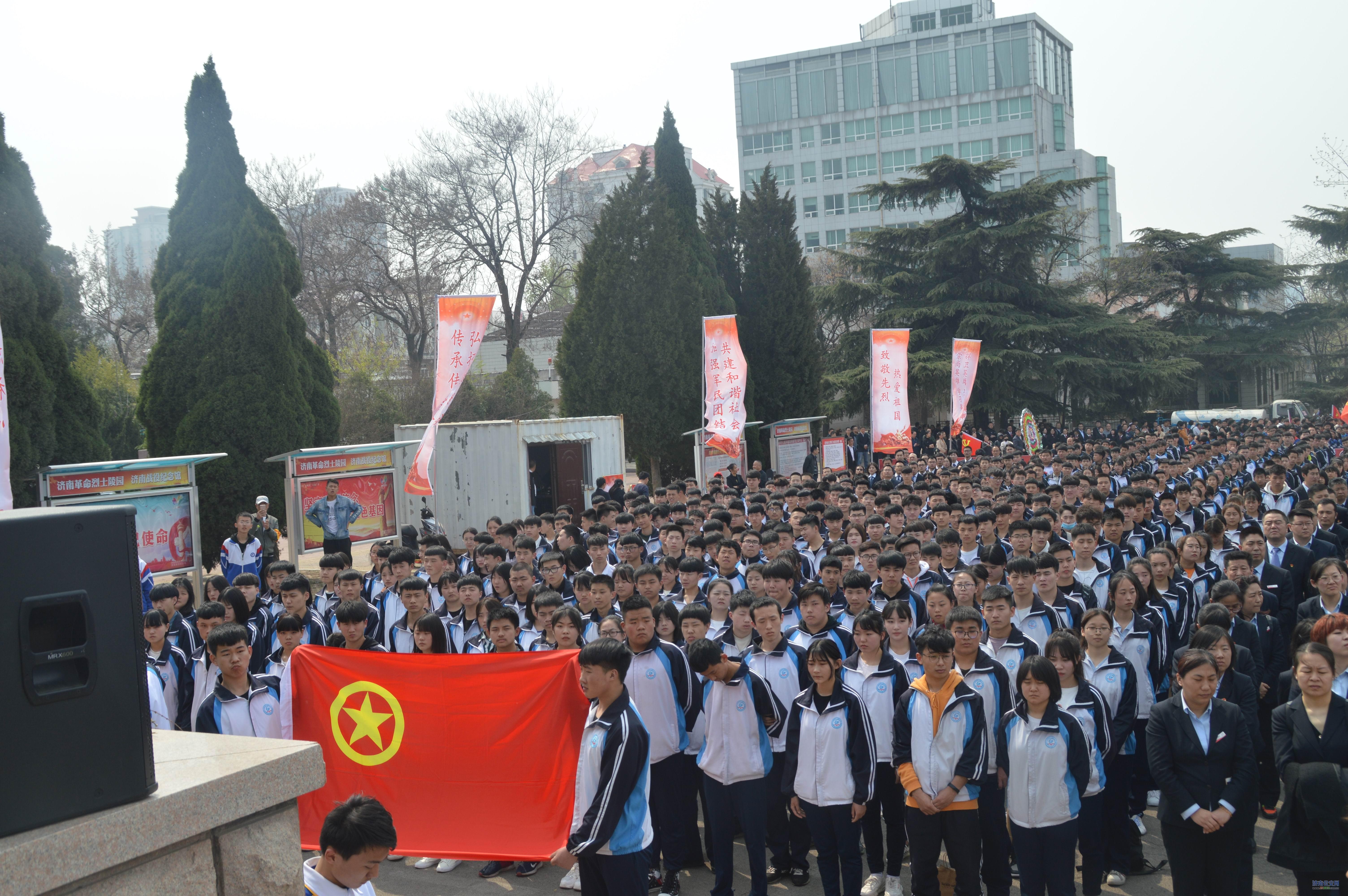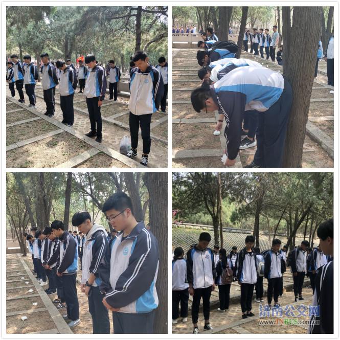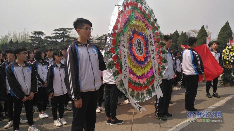 济南公交官网讯 为了追寻英雄足迹,继承先烈遗志,增强责任感和使命感,济南市公共交通职业高级中学于2019年4月4日下午组织全体师生到英雄山革命烈士陵园祭奠革命先烈,悼念仪式由17级6班王朝舜同学主持。悼念仪式上全体师生向烈士行三鞠躬礼,共同瞻仰烈士墓并敬献花圈,整个仪式庄严肃穆。