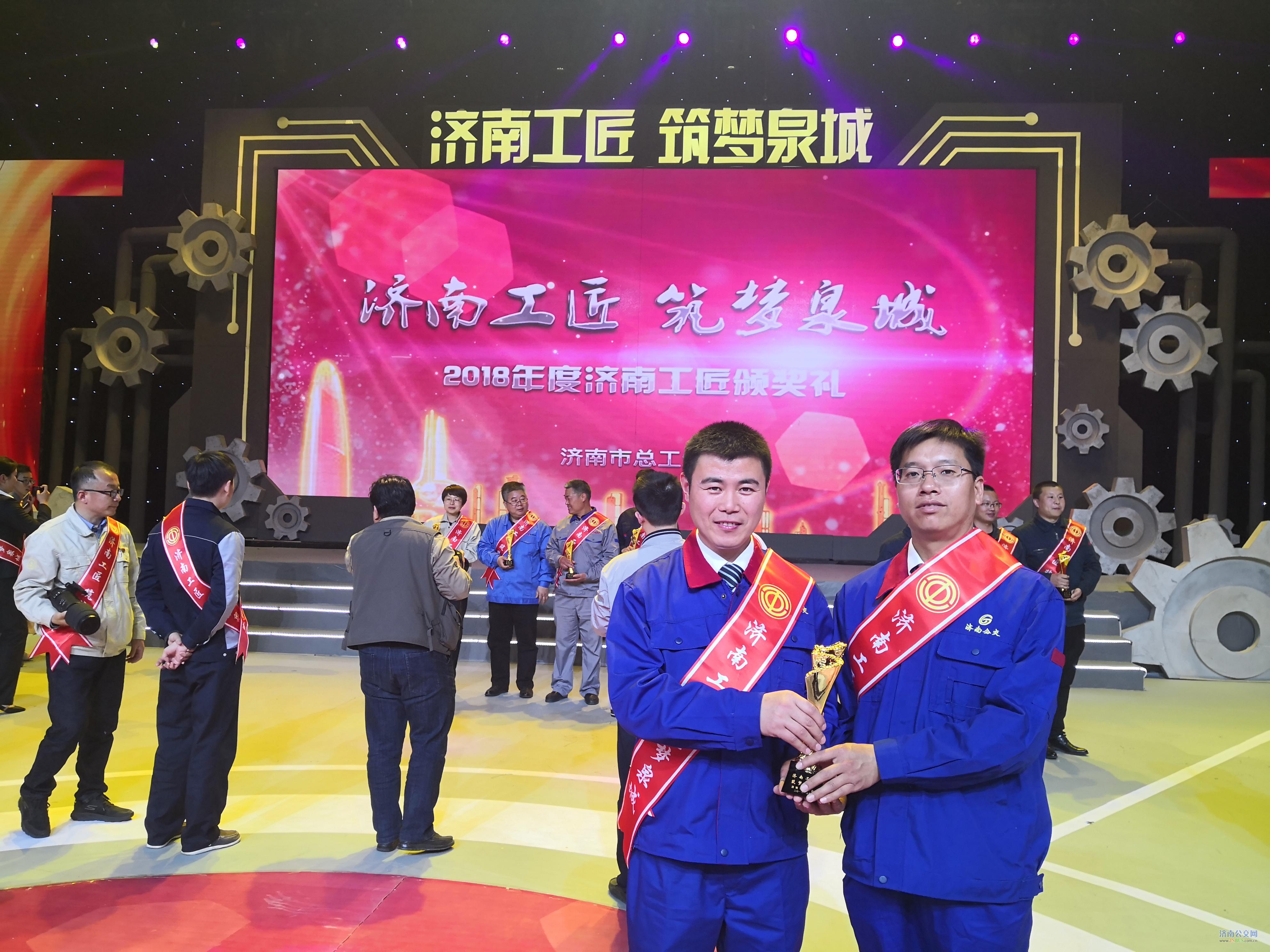 济南公交维修公司修理工王朝金被评为2018年度“济南工匠”,市政协副主席李好臣为其颁奖,2017年度“济南工匠”获得者济南公交维修公司例检员宁玉顺受邀参加了本次颁奖典礼。