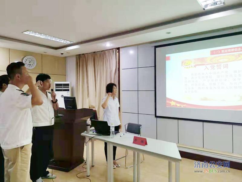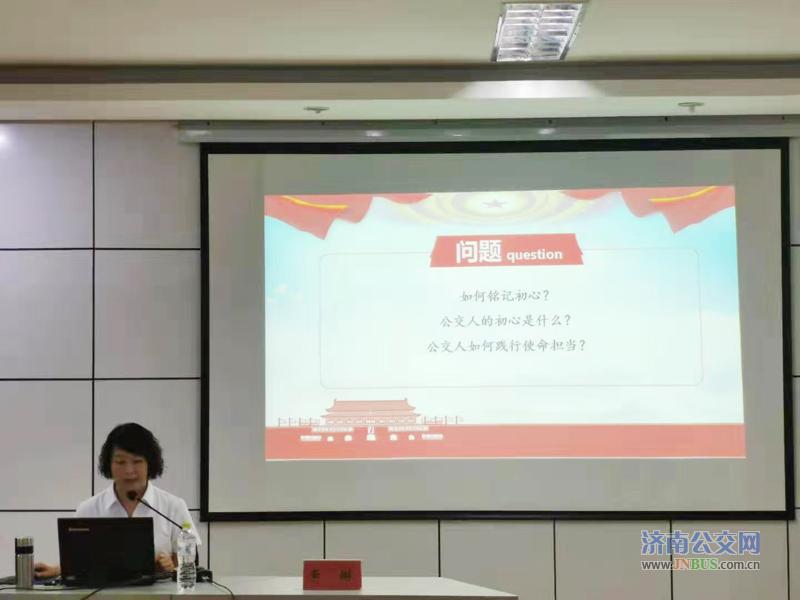 开班仪式结束后,干线公交党委书记李琳为大家上了一堂生动的党课。课程主题是“党旗引领悟初心,担当使命向前进”,围绕“如何铭记初心、公交人的初心是什么、公交人如何践行使命担当?”三个问题展开,讲述了“中国共产党成立背景; 党旗引领,铭记初心;公交芳华,常念初心;担当使命,践行初心”四部分内容。期间,无数精彩视频让人热血沸腾,众多红色故事令人精神振奋,当所有在场党员在李书记的带领下郑重地举起右手,激昂地宣读入党誓词时,培训现场的气氛达到了高潮。通过重温入党誓词,学员们再次接受了精神洗礼,牢记了初心使命,时刻谨记共产党员的责任和担当。