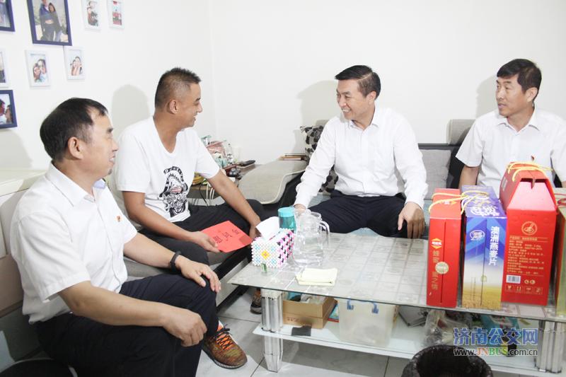 济南公交官网讯 中秋佳节即将来临,9月11日,总公司石军总经理来到六分公司困难职工家中看望慰问。总公司工会主席郝勇及六分公司经理邓军航、党委书记贾长亮陪同慰问。