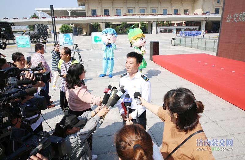 济南公交官网讯 9月16日上午10点,山东省交通运输厅、济南市人民政府在济南西站公交枢纽举行2019年“公交优先 绿色出行”宣传周启动仪式。全国优秀共青团员、济南公交98路线驾驶员邱奇帅担任宣传周形象大使并宣读“公交优先 绿色出行”宣传周倡议书。
