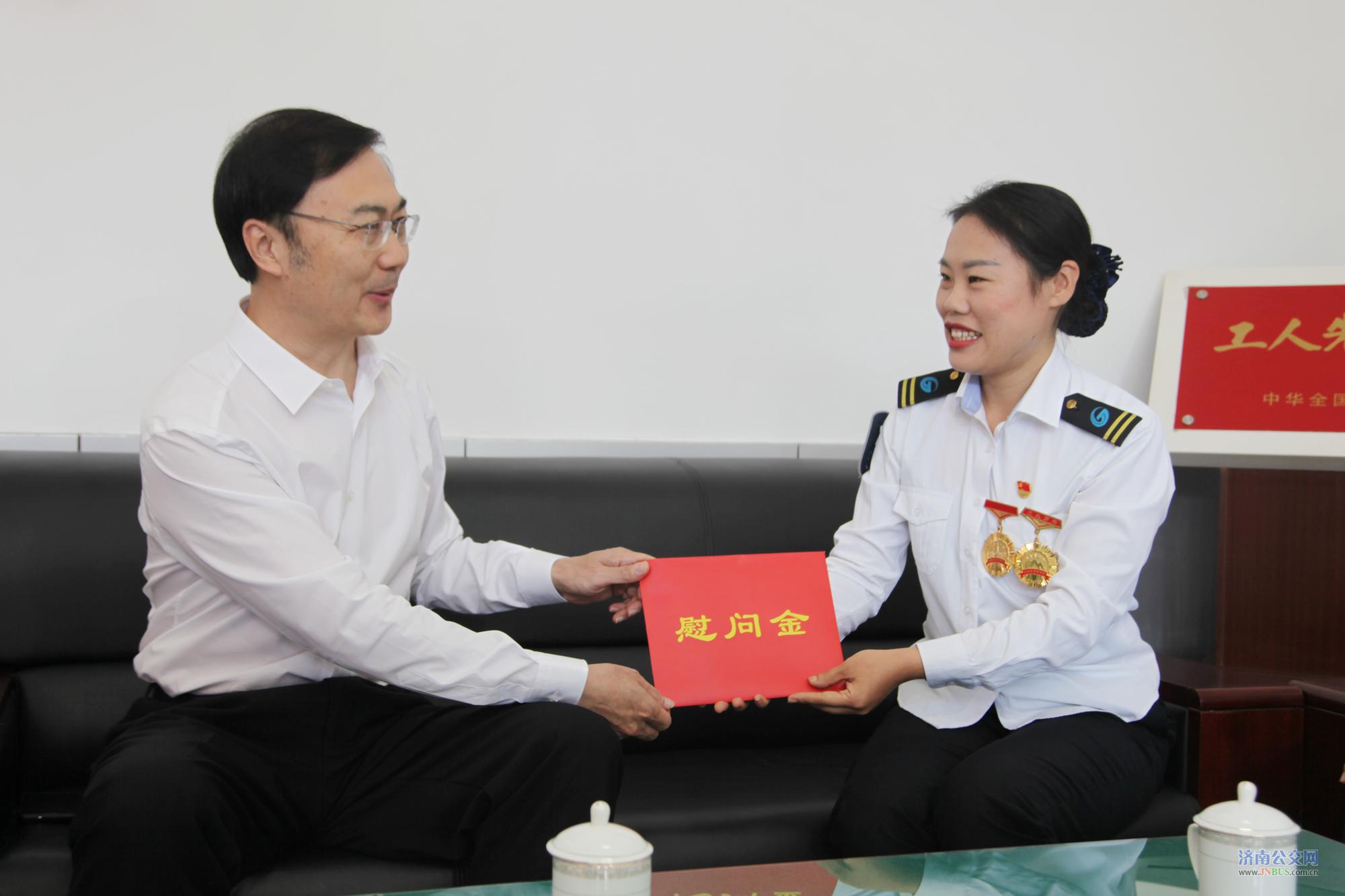济南公交官网讯 金秋时节,泉城济南到处洋溢着节日的气氛。9月23日上午,济南市委常委、宣传部部长杨峰一行来到济南市公共交通总公司,看望慰问全国道德模范提名奖获得者、K52路驾驶员董丹,并向坚守岗位文明服务市民出行的广大公交干部职工致以崇高敬意和节日问候。