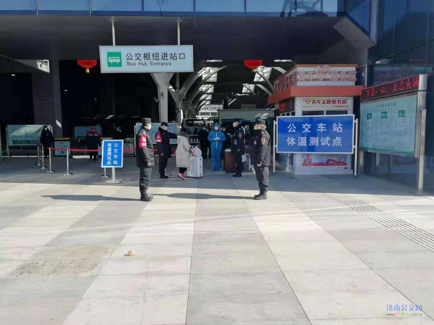 济南公交官网讯 为了贯彻落实济南公交集团公司“关于做好新型冠状病毒感染肺炎疫情控制工作”的指示精神,恒通保安公司迅速行动,积极配合营运公司加强疫情防控工作。为了应对节后的高峰客流,加大新东站、西客站公交枢纽的疫情防控力度,从2020年1月30日起,恒通保安公司专门派遣了特勤队在新东站、西客站公交枢纽重要通道、公交车进出站口等重要关口进行值守,加强对进出站人员进行体温检测、查验身份等工作,以保证市民安全。