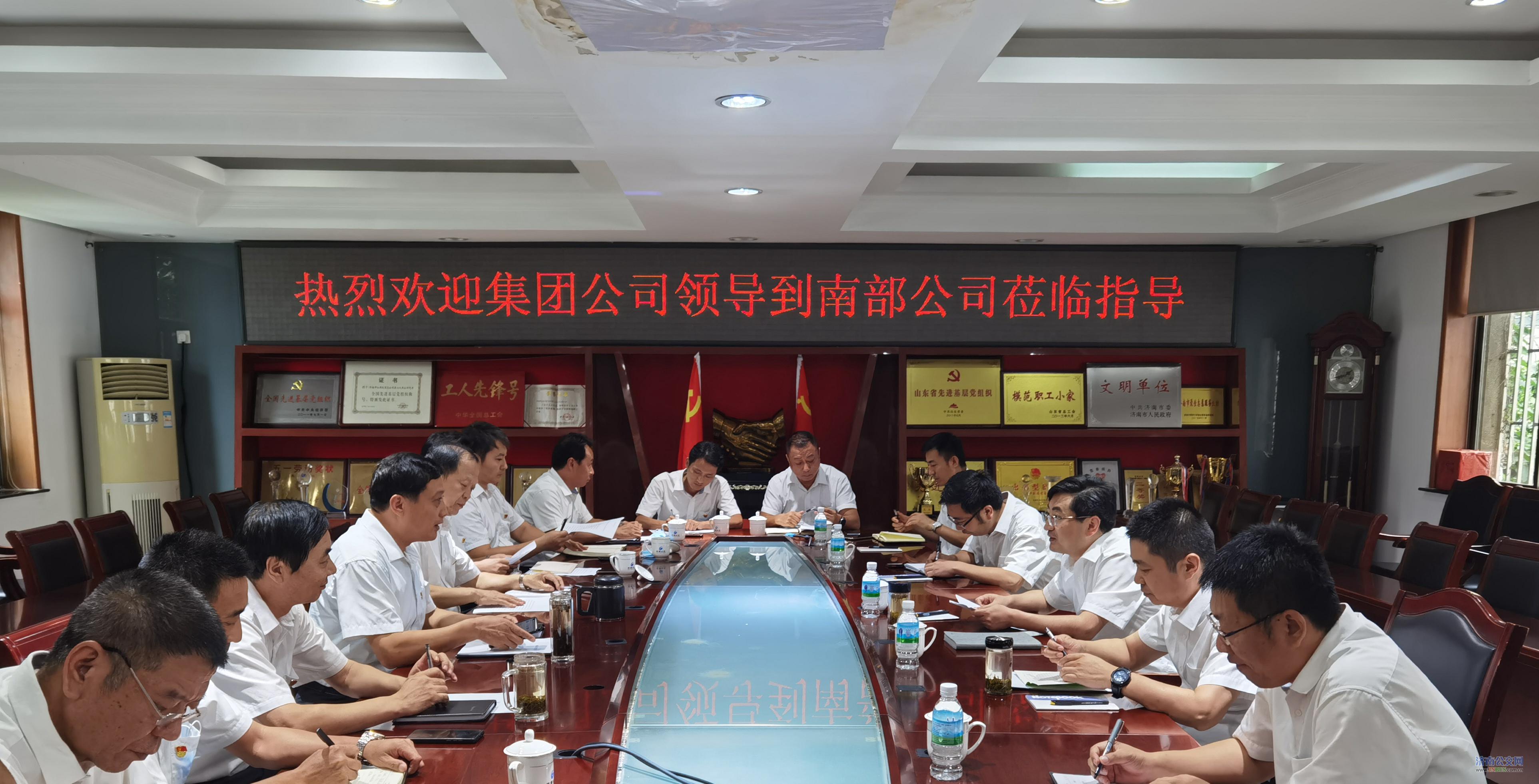 济南公交官网讯 8月6日下午,集团公司周总、张总,营运市场部潘部长、王主任,办公室主任助理刘主任等领导到南部公司进行调研。南部公司班子成员、各部室负责人及各车队车队长参加会议。