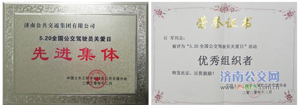 济南公交官网讯 12月9-10日,由中国土木工程学会城市公共交通分会主办的上海国际氢能与燃料电池及加氢站技术设备展览会暨第二届“5.20全国公交驾驶员关爱日”经验交流会在上海新国际博览中心举办。会上表彰了一批在“5.20全国公交驾驶员关爱日”活动中取得优异成绩的单位和个人,其中,济南公交集团荣获“5.20全国公交驾驶员关爱日”先进集体荣誉称号,济南公交集团董事长、党委书记石军荣获“5.20全国公交驾驶员关爱日”活动优秀组织者荣誉称号。
