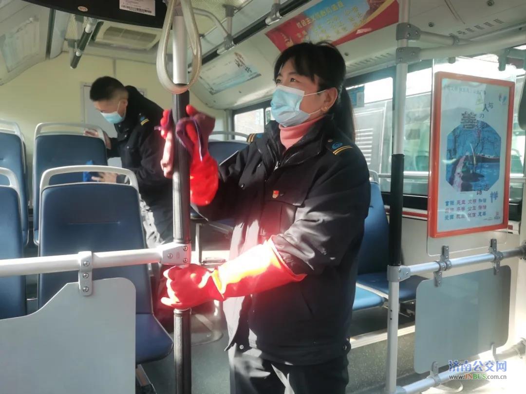 济南公交官网讯 2022年1月1日,新年第一天,济南公交驾驶员张敏像往年一样放弃与家人在一起的时间,坚守在工作岗位上,她每执行完一圈的营运任务回场后,都会认真的清理车辆卫生,对车厢进行防疫消毒,检查车况,在新年第一天做好各项工作,为乘客提供安全、舒适、温馨的乘车环境。