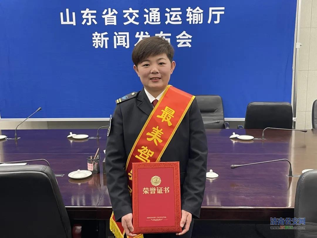 2021年12月31日下午,山东省交通运输厅召开新闻发布会向社会发布山东省城市交通客运行业“最美驾驶员”和“优秀城市交通客运企业”有关情况。济南公交集团南部公司六队K155路驾驶员孟苓菲荣获山东省“最美驾驶员”荣誉称号。