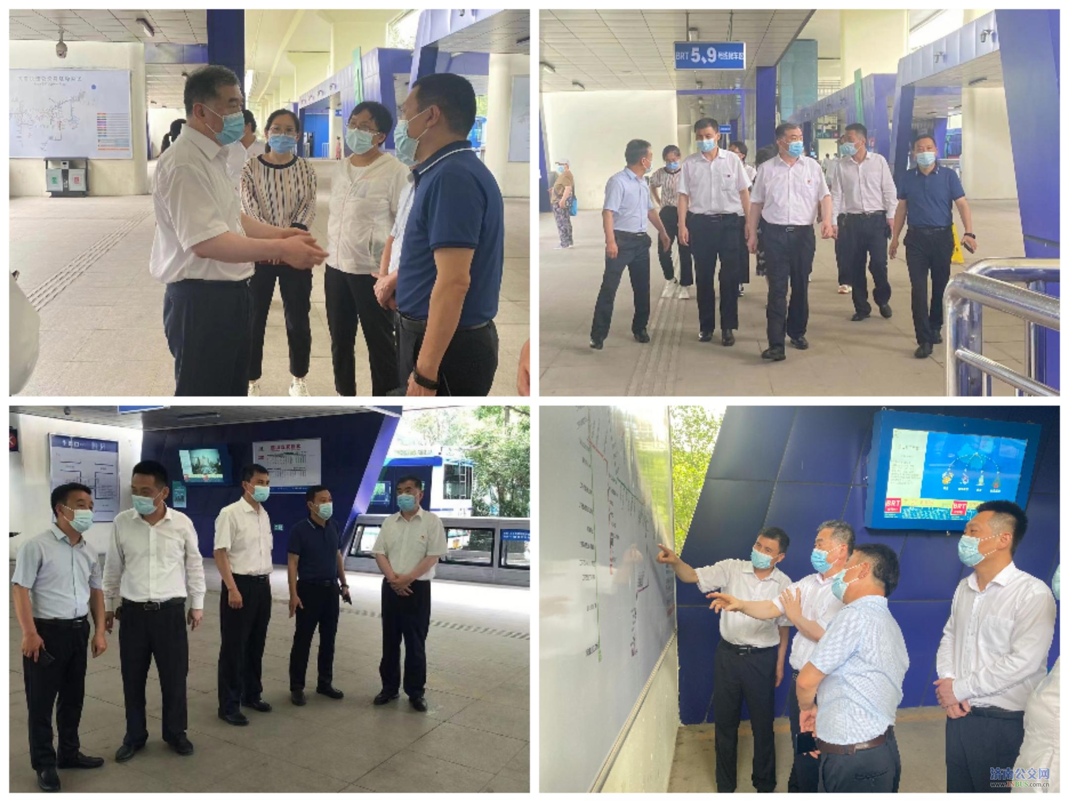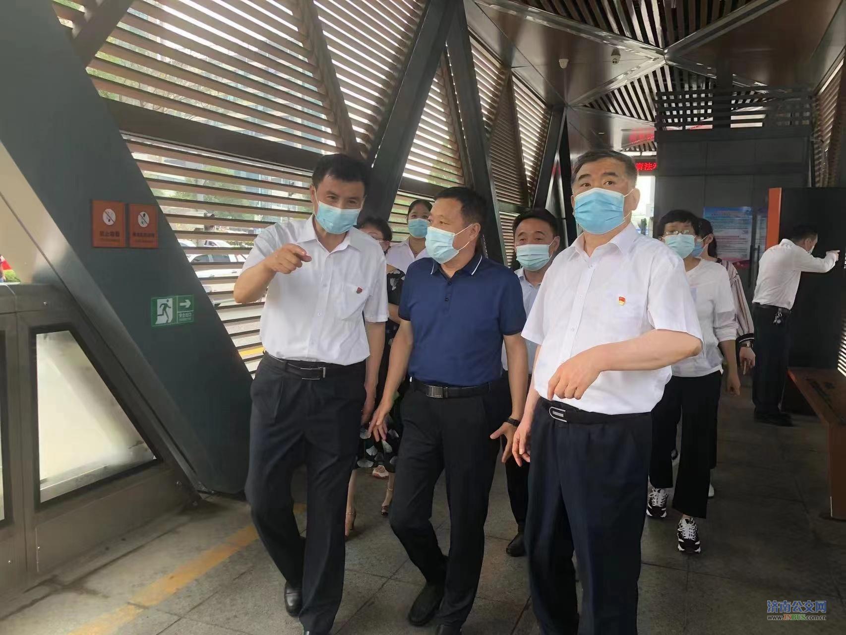 济南公交官网讯 6月23日上午,邯郸公交党委书记、董事长赵国华,副总经理王洪彬一行来到济南公交BRT站台考察调研。集团公司党委副书记、工会主席石绍滕,营运市场部部长杨增勇,干线公司经理田锡庆陪同参观调研。