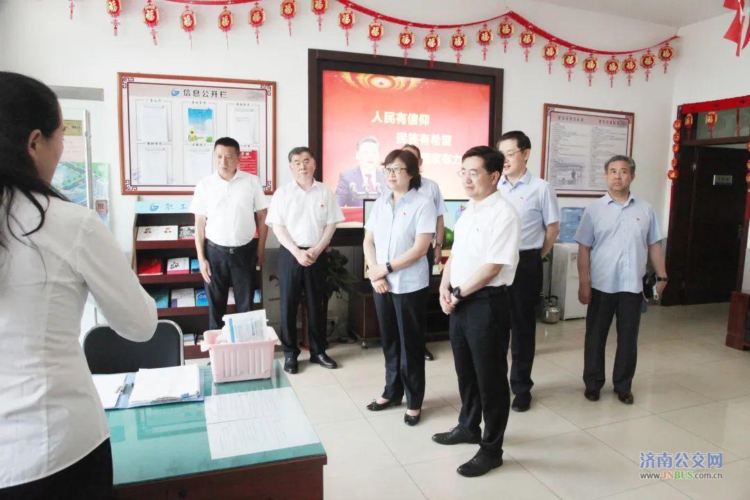 王宏伟一行首先参观了B52路站房,了解线路运营、现场管理、疫情防控等情况,并登上K169路济南融资担保集团号,查看车辆相关情况。