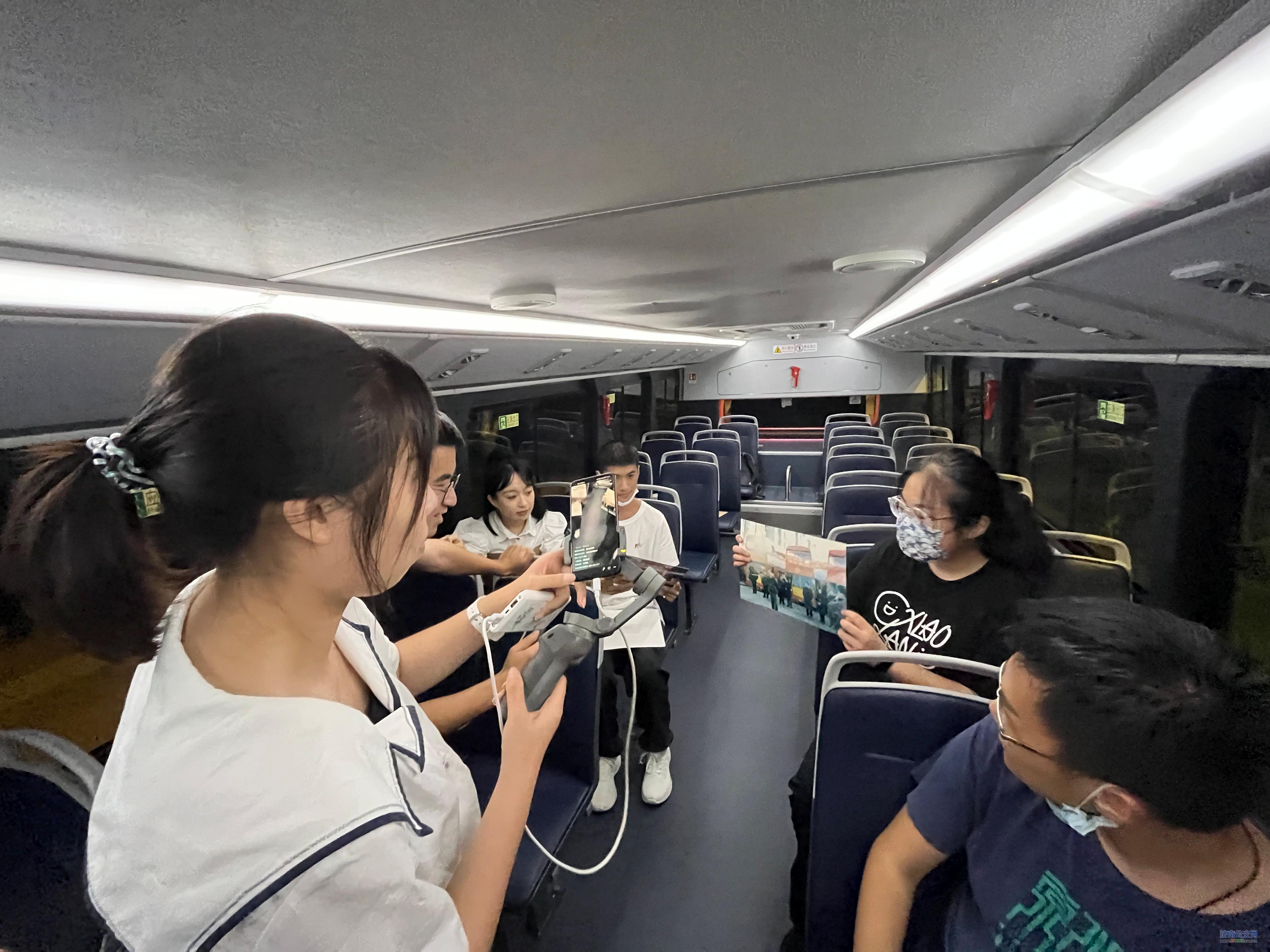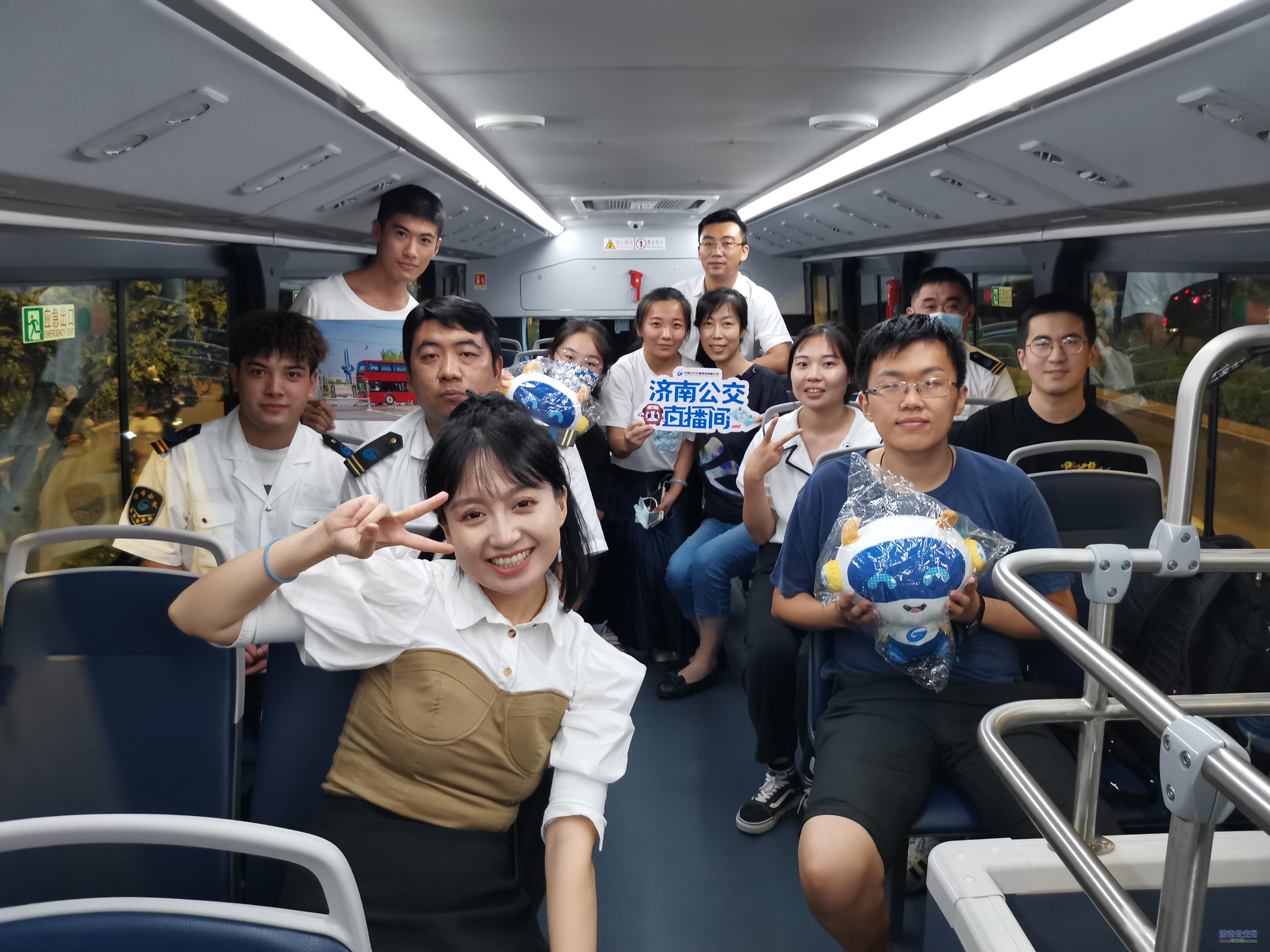 济南公交官网讯 8月18日晚,在集团企业文化部和爱济南客户端的大力支持下,为捅破运量天花板,打响红奔奔品牌,做好双层车推广工作,西部公司应势而为,响应集团号召,在202路双层公交车上开展“夜乘红奔奔 观泉城夜宴”直播活动。直播现场氛围高涨,所有工作人员神情激越,多才多艺的主持人展露灿烂笑容,诉说着“红奔奔”的公交情。