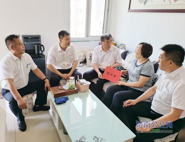 济南公交官网讯 9月7日上午,中秋佳节即将来临之际,集团公司党委副书记、工会主席石绍滕代表集团党委来到干线公司走访慰问困难职工马娜娜。干线公司经理田锡庆、书记韩猛陪同走访。