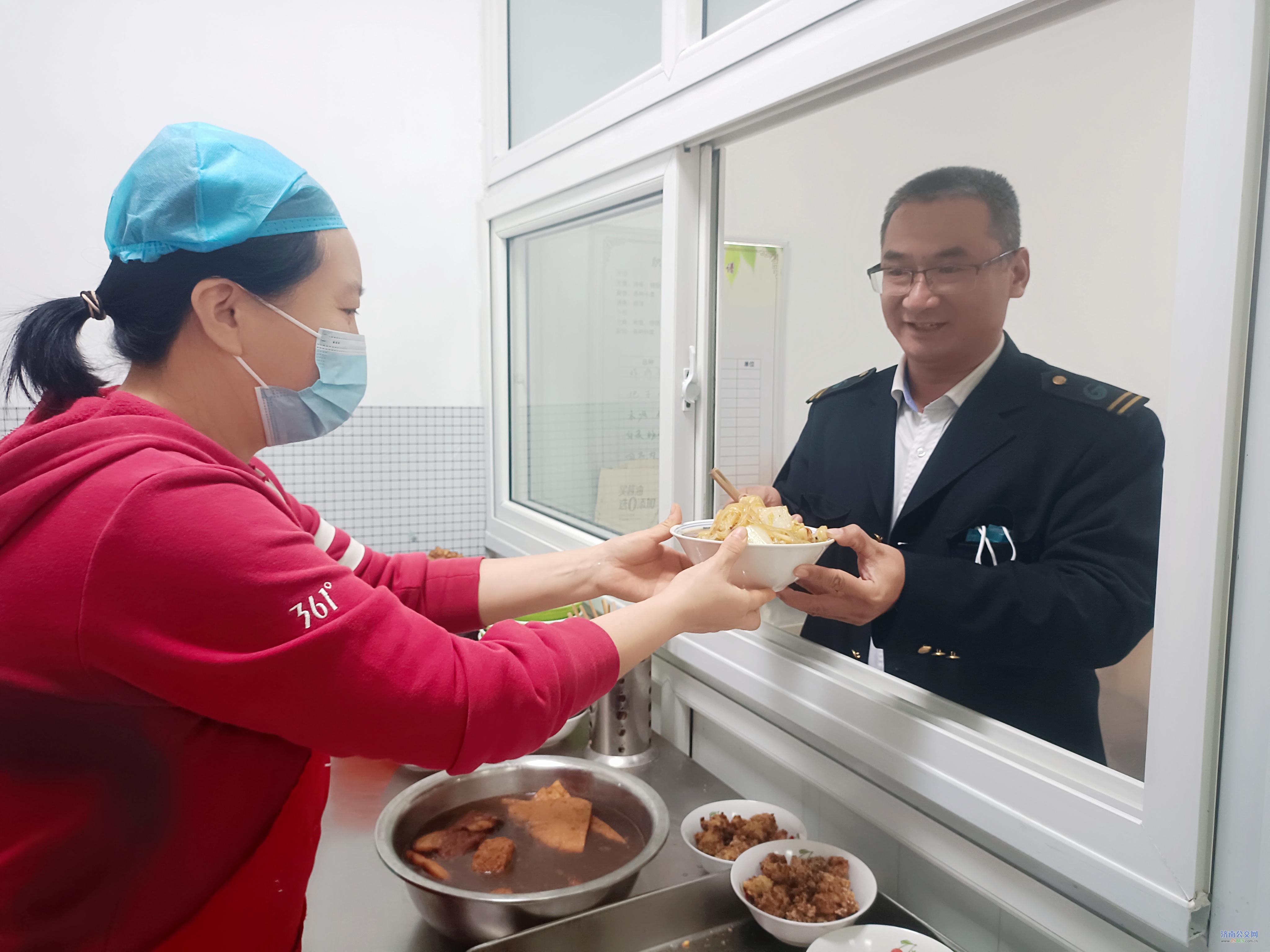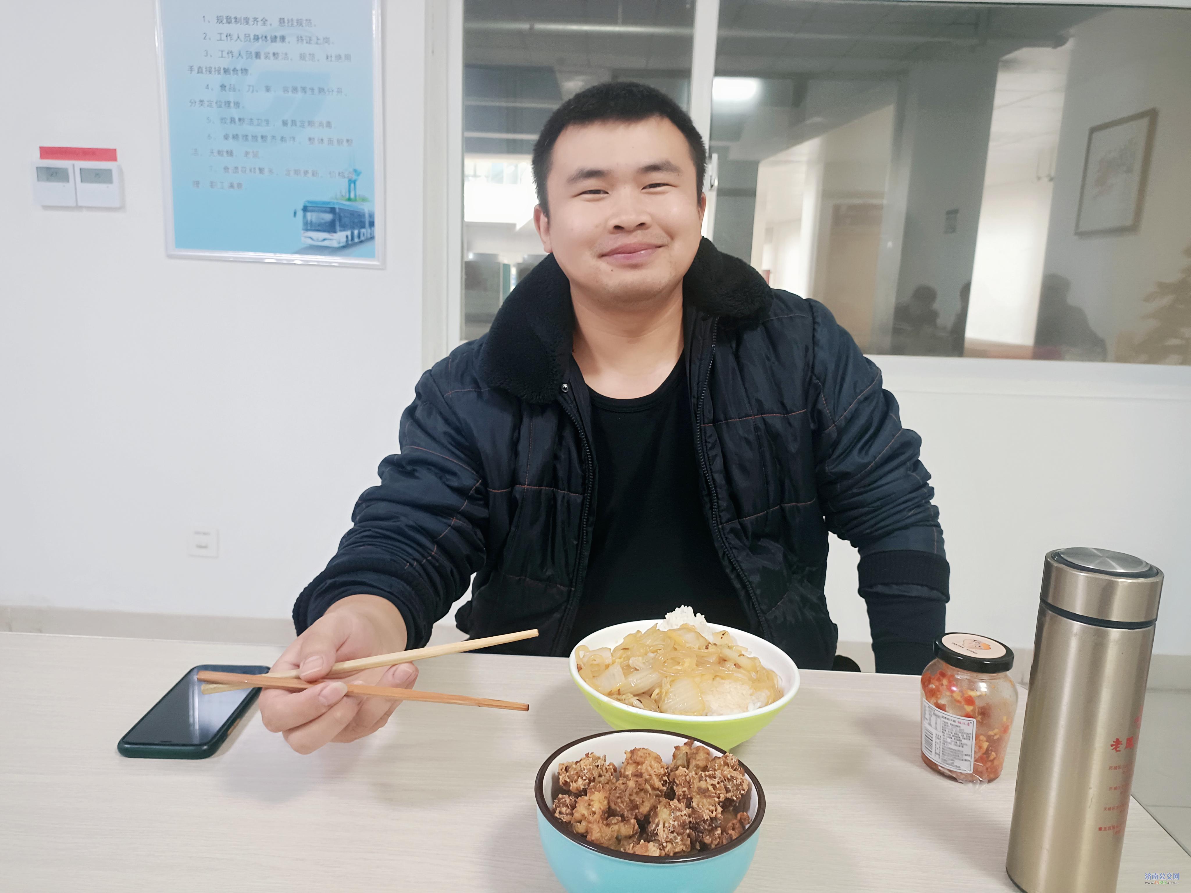 一是严把“卫生”关。从员工就餐区到厨房,油烟管道、冰箱、消毒柜等,每周一次进行卫生死角彻底清理,车队张贴“厨房贴,进一步改善食堂的卫生状况,为全体员工打造温馨舒适的就餐环境。二是严把“验收”关。车队安排专人每日抽检食堂食品,对隔夜菜品坚决清理。坚持每周制定食谱,每日在食堂公告栏对外公布。三是把好“烹饪”关。车队每日提供主食类至少5种,肉类的鸡腿、把子肉、四喜丸子等其他炒菜7种以上。近日小食堂又有新变化,车队推出了“手工水饺”,调制的饺子馅有韭菜猪肉、茴香苗、胡萝卜鸡蛋等荤素搭配,营养美味,职工吃得暖胃又暖心。谈起食堂的伙食,驾驶员李鹏、田振、王珊珊等纷纷竖起了大拇指,“食堂菜式花样比家里的还多,不仅吃得饱,还吃得好、吃得健康。”
