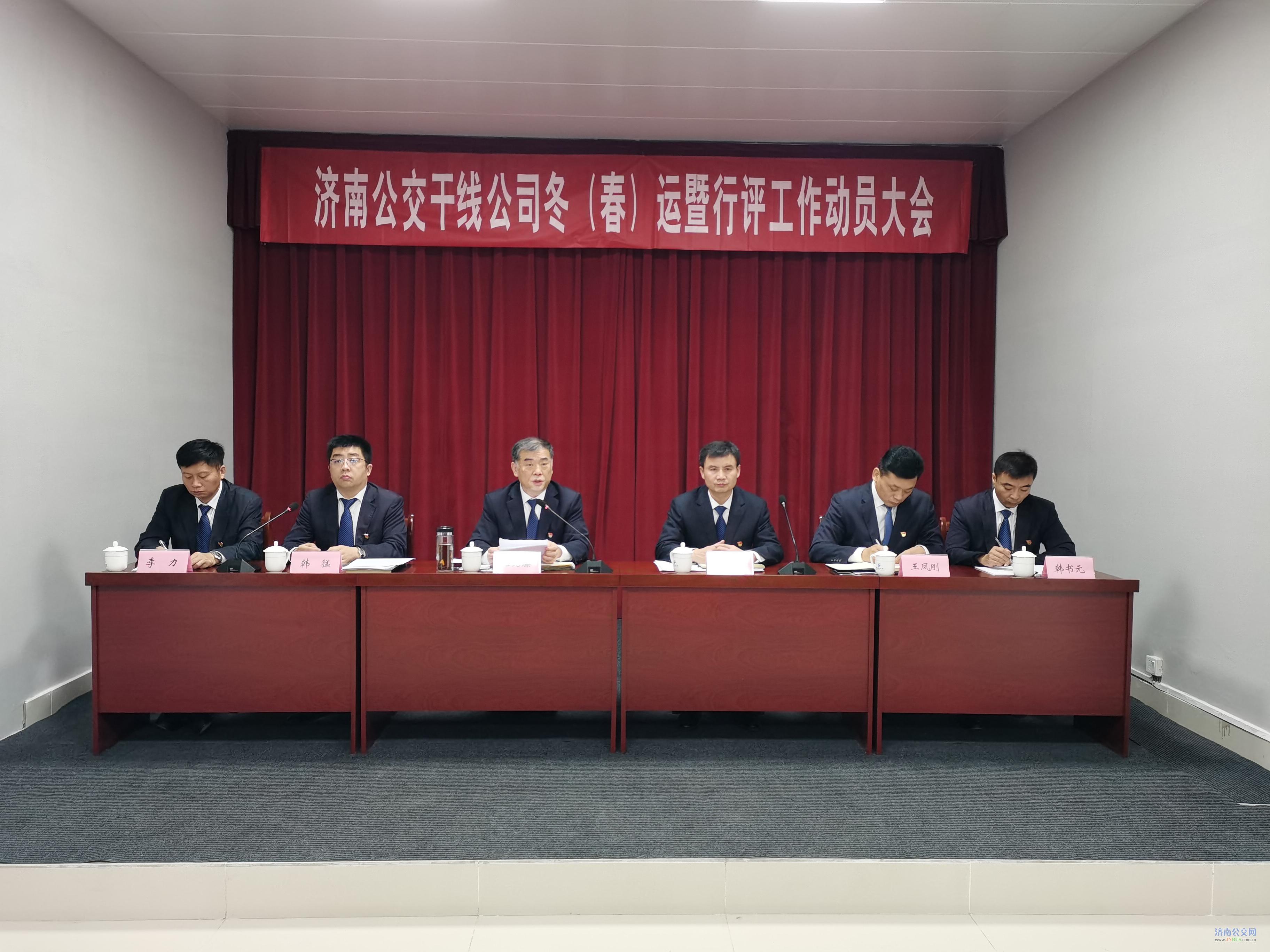 济南公交官网讯 为深入贯彻落实好集团公司冬(春)运和行评动员大会精神,扎实做好2022年冬(春)运和行评工作,11月11日上午,干线公司召开冬(春)运暨行评工作动员大会。集团党委副书记、工会主席石绍滕出席会议。公司班子成员、机关各部室、各车队、站务管理部及职工代表参加会议。会议由公司党委书记、工会主席韩猛主持。