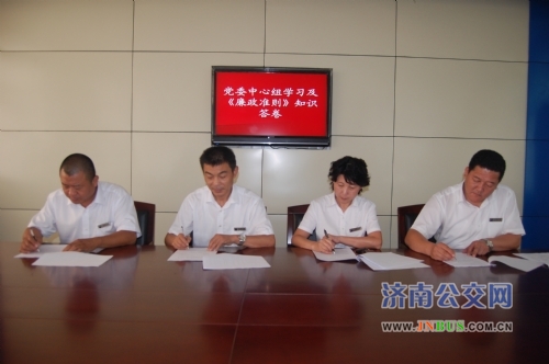 6月23日,三公司党委认真组织学习胡锦涛总书记在建党89周年前夕加强党的基础组织建设问题第二十一次集体学习上的讲话精神,并就如何开展好党建89周年系列活动进行了研究讨论,对制定的《关于组织开展建党89周年系列纪念活动的通知》进行了再部署。根据总公司纪委工作安排,进行了党员干部学习《廉政准则》知识考试,图为三公司领导班子成员在认真答题。