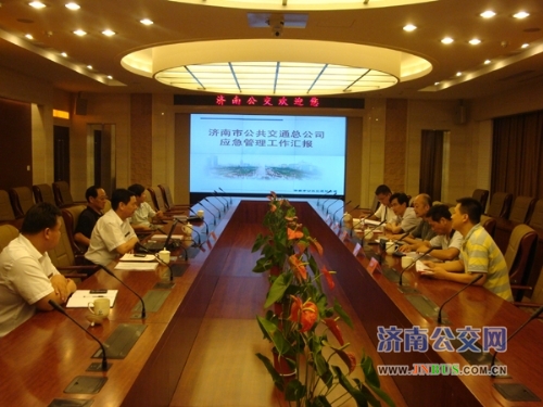 济南公交官网6月24日讯 昨天下午,海南省交通运输厅安全监督处副处长李宏伟一行四人到公交总公司考察学习应急指挥平台建设和应急管理工作的先进经验。山东省交通运输厅运输安全处副处长王际逊,济南市交通运输局安全处处长白志广陪同考察。