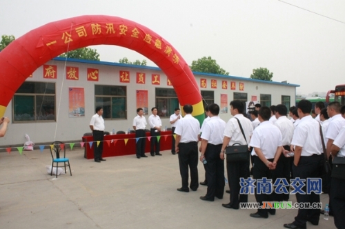 济南公交官网6月25日讯 按照总公司安全生产月工作要求,为保障汛期行车安全,一公司在汽车五队进行了综合应急演练,总公司副总经理姜良到会指导并讲话,姜总指出做好汛期安全工作要统一思想,提高认识,明确责任,强化措施,着力构建防汛工作的长效机制,将工作重点放在事故预防上。