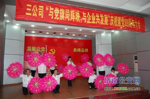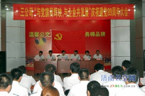 济南公交官网7月2日讯 昨天下午,三公司在总公司工会礼堂隆重举行纪念建党89周年大会。总公司党委副书记、工会主席刘波,副总经理姜良出席会议。三公司党委书记、经理曲修业和领导班子成员、受表彰的五好党支部、优秀共产党员以及各车队部室主要负责人、党员职工代表共100余人参加了会议。会议由公司党委副书记、工会主席安丽主持。