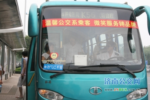 近日,我市持续高温,恒生公司设计制作了“冷气已开放”标识,张贴在每辆K系列公交车的前风挡处,并要求每一名驾驶员一定要按照规定每日开启空调,保证市民乘坐K系列公交车时感到凉爽舒适,提高乘客满意度。