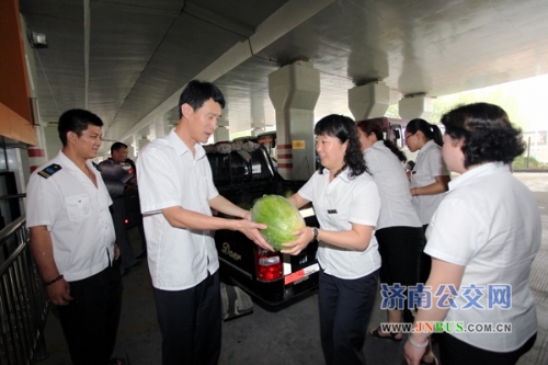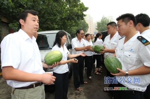 为纪念建党八十九周年,进一步推进创先争优活动深入开展,充分发挥广大党员的先锋模范作用,总公司机关党委开展了“党员奉献日活动”。 7月10日,总公司机关政工党支部党员为恒生公司四队、电车公司二队、三公司五队、一公司六队、二公司、维修公司、场站公司送去了自费购买的西瓜,在炎炎夏日为基层员工送去了“清凉”。