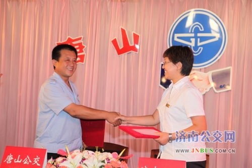 唐山市城管局正县级调研员牟淑敏到会祝贺并讲话。她希望双方本着互相学习、共同进步的原则,并以深化共建内容为主线,以提高公交服务水平为目标,不断提升广大职工的服务水平,为广大市民出行做好服务,为两地公交的和谐发展做出新的更大贡献。