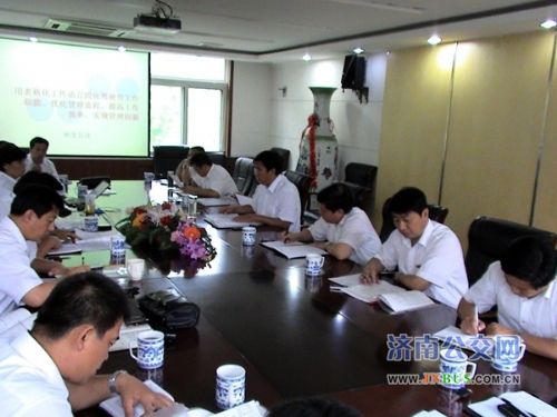 济南公交官网讯 7月15日下午,总公司在三楼会议室召开了工作流程表格化管理会议。总公司副总经理姜良,总公司安保部部长赵德荣、副部长尹晓伸,营运市场部副部长孙涌和各营运公司营运经理、营运科长、安保部长参加了会议。