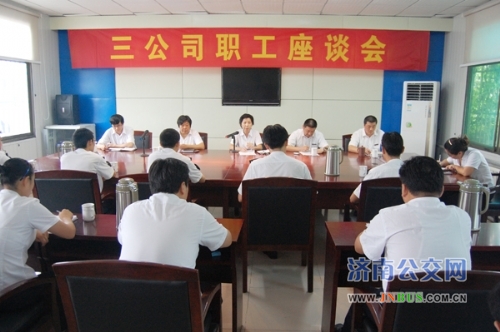 济南公交官网8月11日讯 今天上午,为进一步畅通民意,体现以人为本的管理理念,三公司召开职工座谈会,邀请公司职工畅所欲言,共谋企业发展。三公司党委副书记、工会主席安丽,各部室负责人,车队职工代表共30余人参加座谈。