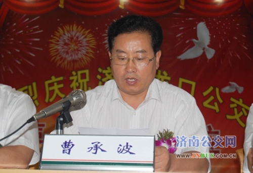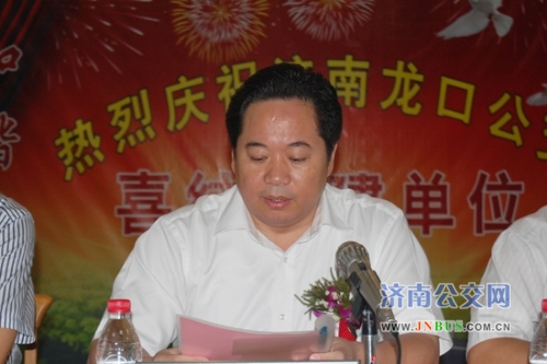 仪式开始,龙口市人大副主任曹承波首先致欢迎词。他代表龙口市委、市政府、市人大对薛兴海总经理一行的到来表示热烈的欢迎,并对济南公交给予了高度评价。他说,近年来,济南公交各项工作一直以来都走在全国公交的前列,并受到了胡锦涛总书记的高度赞扬,是龙口公交学习的榜样,希望龙口公交以此次共建和谐线路为契机,要把济南公交的先进经验学习好、运用好,以更加安全、便捷、优质的服务,回报龙口各级领导对公交的关心和支持。
