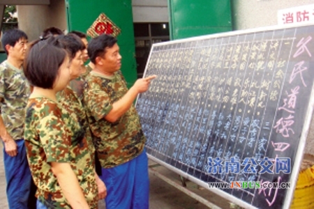 济南公交维修三分公司组织修理人员学习公民道德40则。