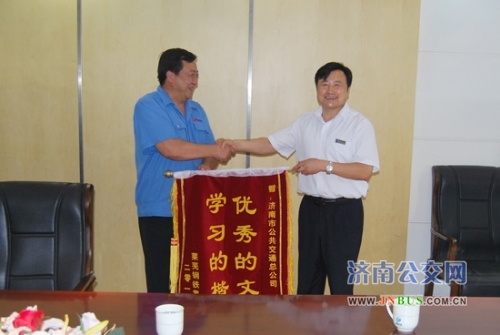 济南公交官网讯 8月23日上午,莱芜钢铁集团有限公司公益事业部张部长一行四人来到济南公交,分别向公交公司和公交研究院献上锦旗,对济南公交为莱钢通勤班车优化和试运营所提供的技术支持和帮助表示感谢。