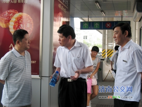 济南公交公司领导对BRT站台便民服务亭进行考察