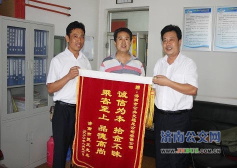 济南公交官网8月31日讯 “真是百闻不如一见啊!做梦也没想到丢失的钱物还能找到,物归原主,让我们感受到公交公司这么优秀的企业培养出这么高尚的员工,真是太感谢你们了,向你们学习。”昨天下午,济南市民王勇先生,手拿锦旗来到安保公司,进门就发出了肺腑之言,并在丢失的现金中拿出几百元钱要感谢拾金不昧的员工,被公司领导谢绝。