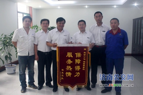 济南公交官网9月1日讯 自潍柴服务站成立以来,维修公司大修分公司以“让领导满意,让营运公司满意,让驾驶员满意”为服务理念,经常加班加点,全力以赴做好车辆保障工作,受到车队领导和驾驶员的高度赞扬。今天上午,恒生公司三队队长吴培勇、机务员郭兴、代班员董杰来到维修公司赠送了锦旗,对大修分公司的维修人员热情为一线服务,保障车辆运行表示感谢。
