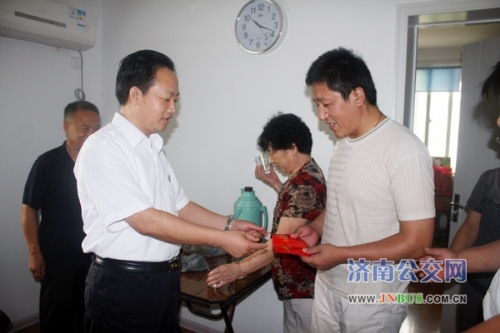 济南公交官网9月18日讯 在中秋、国庆双节即将来临之际,维修公司党委书记、经理王培海,党委副书记、工会主席车立山,办公室主任张红等对维修公司孙爱民、金增耀等重病困难职工及部分退休职工进行了走访慰问,为他们送去了总公司及维修公司的关怀和慰问金。
