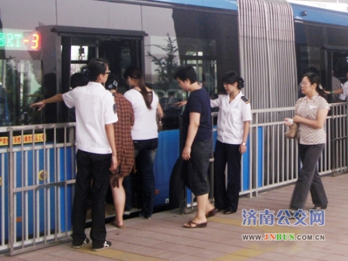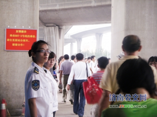 为了让乘客及时了解在全福立交桥西站台延长段部分的登程方法,快速公交公司的站务员陈昊琦、李妍、姚臻、耿倩、杨景等人利用休息时间,高峰时段自发来到该站台疏导乘客,引导乘客分开候车,节约了乘客的时间,受到了一致好评。