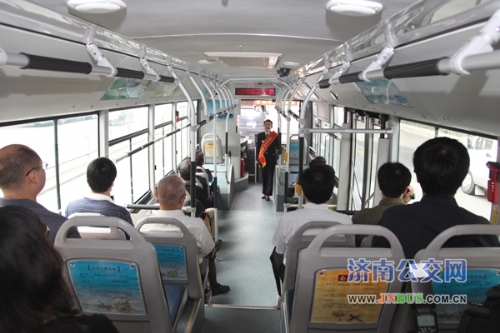 乘务员为领导们展示济南公交的微笑服务