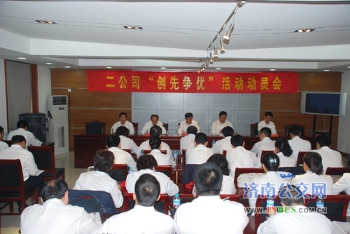 济南公交官网讯 为扎实推进“创先争优”工作,营造良好的活动氛围,近日,二公司召开了“创先争优”活动再动员大会。总公司副总经理石绍滕,二公司班子成员及党员代表80余人参加了会议。