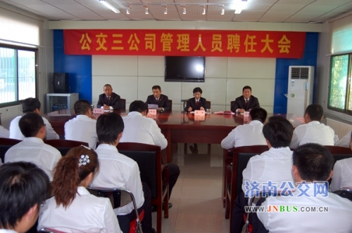 济南公交官网讯 9月27日下午,三公司会议室掌声不断,公司管理人员聘任大会在这里隆重召开。公司班子成员以及全体管理人员参加了此次大会,会议由公司党委副书记、工会主席安丽主持。