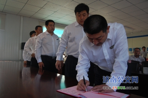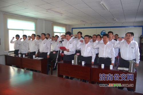最后,全体管理人员进行了宣誓,每一位管理人员都作出了郑重的承诺:“热爱公交,忠于企业;政治坚定,勇于担当;开拓创新,艰苦奋斗;恪尽职守,廉洁高效;精通业务,热情服务;团结协作,注重修养;提升素质,树立形象;不辱使命,奉献社会。”会议在一片热烈的气氛当中圆满结束。