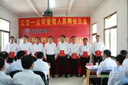 会上,经营管理部经理马广伟宣读了《一公司管理人员聘任通知》;一公司党委书记、经理杨奎星为受聘科级管理人员颁发了聘书;各部室负责人、车队队长为分别为本科室、本车队受聘管理人员颁发了聘书。
