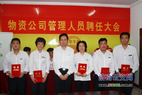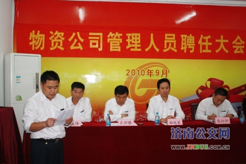 济南公交官网讯 9月28日下午,物资公司召开管理人员聘任大会,公司领导班子成员,全体管理人员参加大会。会议由于成伟书记主持。总公司副总经理石绍滕出席了聘任大会。