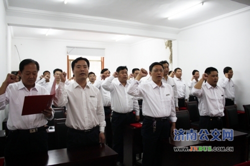 会上,物资公司副经理张向阳宣读了物资公司管理人员聘任文件。经理郑凤军为续聘和新聘任的管理人员颁发了聘书。燃气科科长董静涛、材料二库库长姜秀水、危险品运输车队调度员巩冉三名同志代表新聘任的管理人员做了表态发言。全体管理人员郑重宣誓:“热爱公交,忠于企业;政治坚定,勇于担当;开拓创新,艰苦奋斗;恪尽职守,廉洁高效;精通业务,热情服务;团结协作,注重修养;提升素质,树立形象;不辱使命,奉献社会。”