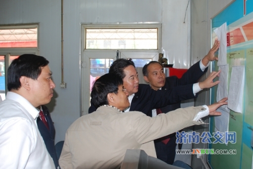 济南公交官网10月1日讯 10月1日上午,市交通运输局副局长陈业华、市交通运输管理办公室主任刘志、副主任崔健,市公交总公司党委书记、总经理薛兴海一行来到二公司车队看望慰问节日期间坚守岗位的一线职工。