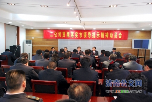 济南公交官网10月5日讯 为深入学习山东省委常委、市委书记焉荣竹同志等市领导对济南公交创先争优活动批示精神,贯彻落实总公司党委有关指示要求,10月4日上午,公交二公司隆重召开贯彻落实市领导批示精神动员会。总公司副总经理石绍滕、二公司党委班子、科室负责人、车队支部书记、副书记及党员职工代表近80人参加会议。会议由公司党委副书记、纪委书记、工会主席于建民主持。