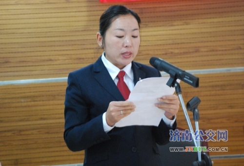 汽车四队调度员姬光玉代表基层管理人员表态发言